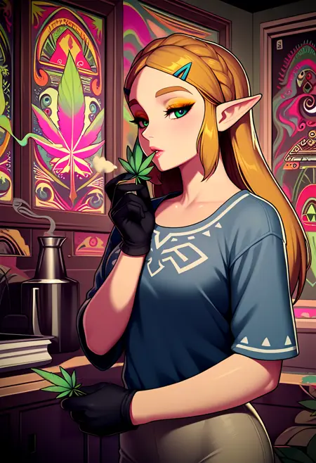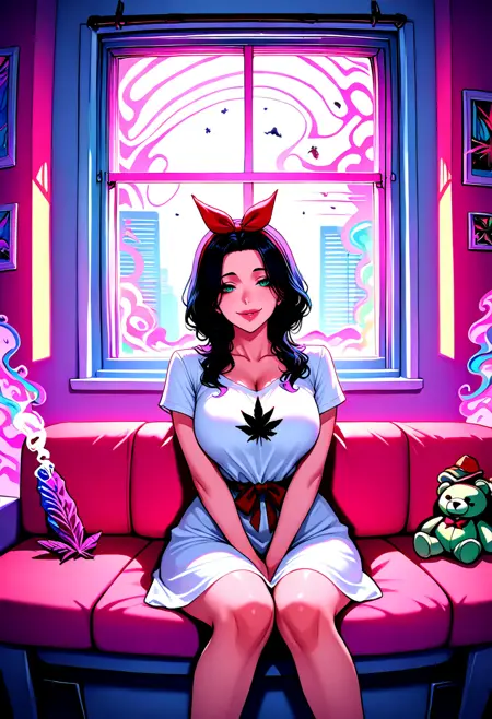 此LoRA捕捉了“烟民美学”的视觉精髓:大麻叶片、烟雾、鲜艳的渐变色彩 以及 轻松愉悦的氛围。灵感源自头店海报、蒸汽波情绪与朦胧的致幻感,是打造绚丽420幻境的首选。