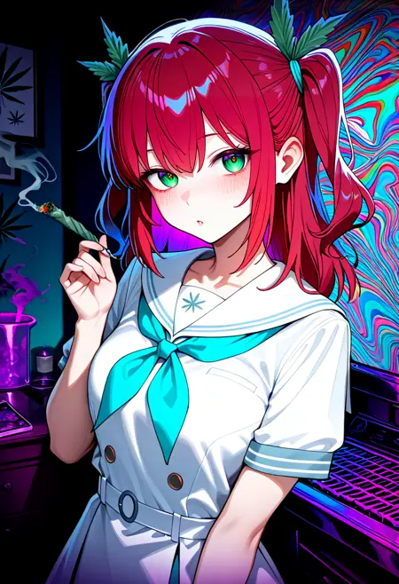 此LoRA捕捉了“烟民美学”的视觉精髓:大麻叶片、烟雾、鲜艳的渐变色彩 以及 轻松愉悦的氛围。灵感源自头店海报、蒸汽波情绪与朦胧的致幻感,是打造绚丽420幻境的首选。
