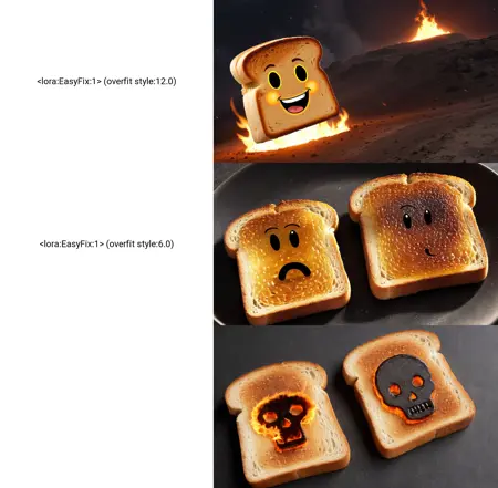 重要:请调整 (overfit style:1.0) 的强度,而非 LoRA 的强度。