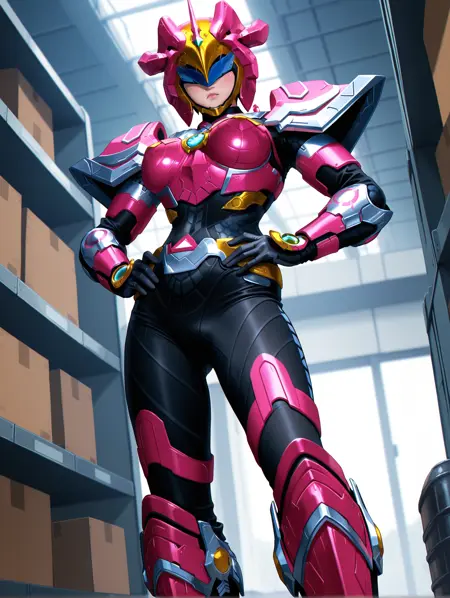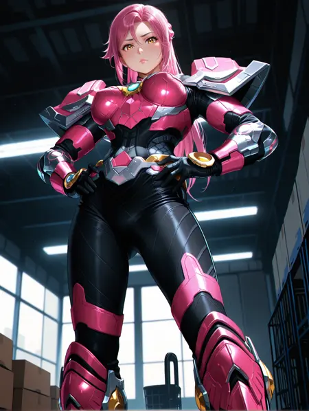 - 天宇/(终极兽力/),1girl,solo,头盔,遮眼,嘴唇,动力装甲,动力靴,黑色紧身衣,中等胸部,胸饰,特摄