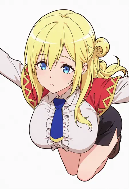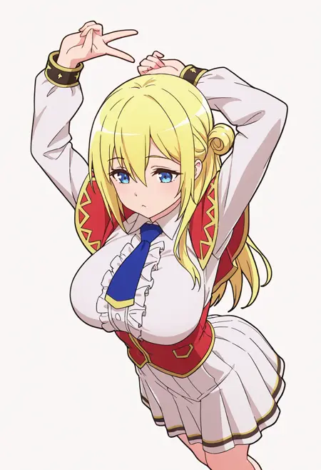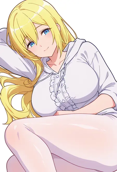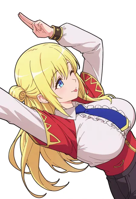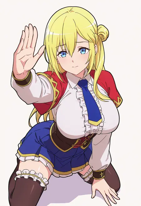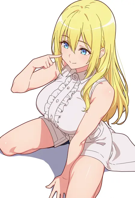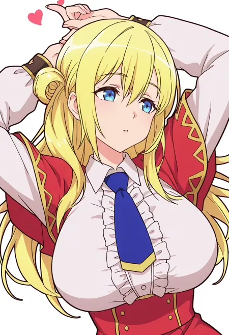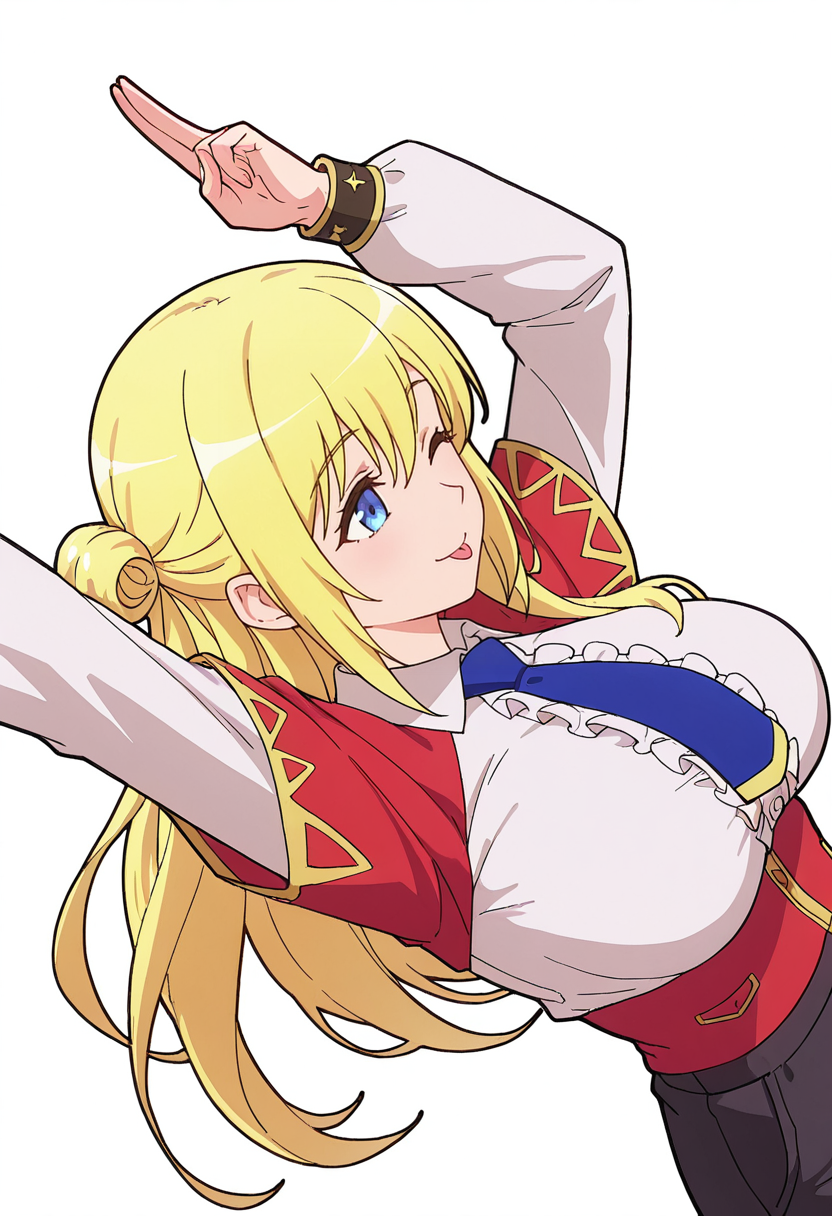 enome_cnr, 金色头发, 蓝色眼睛, 长发, 大胸部, 头发位于眼睛之间, 单束发髻,
