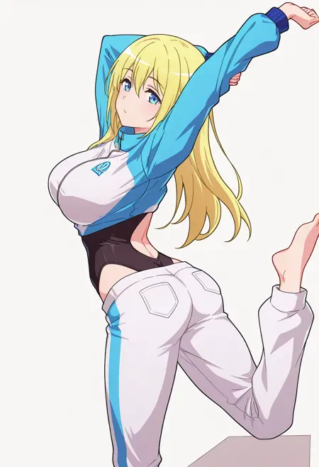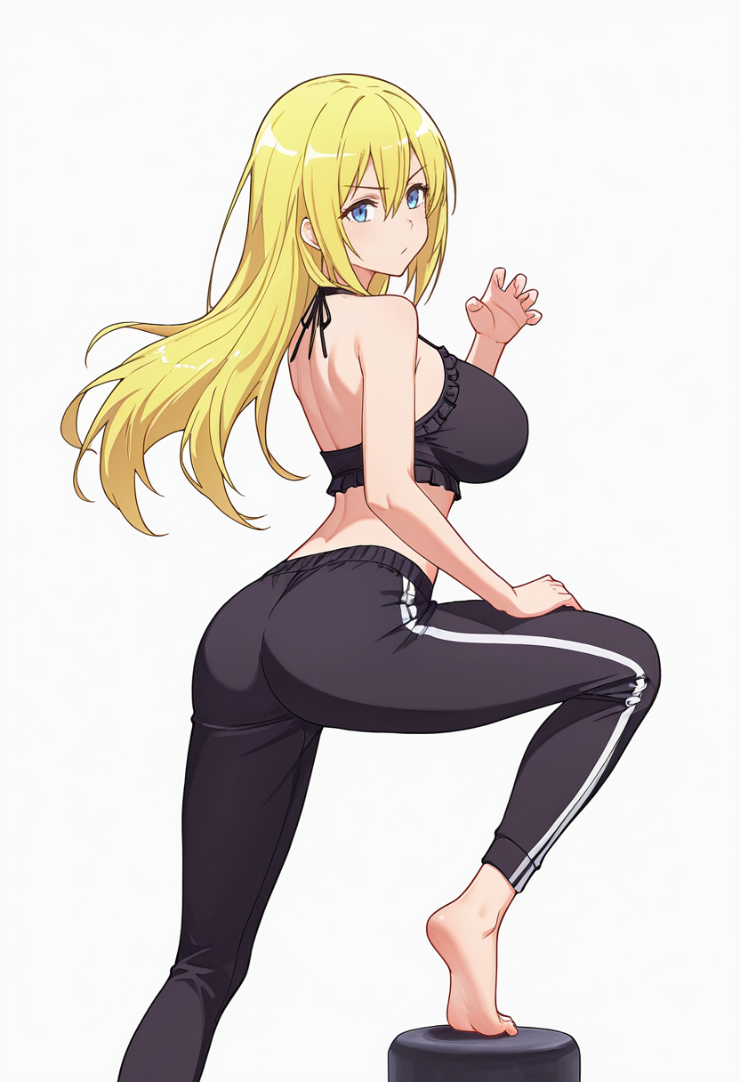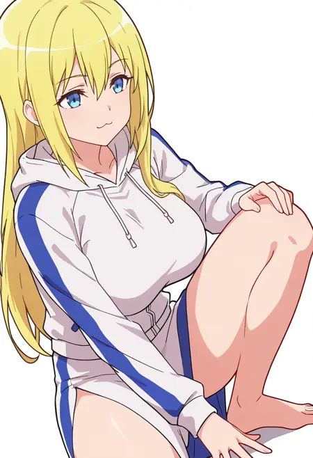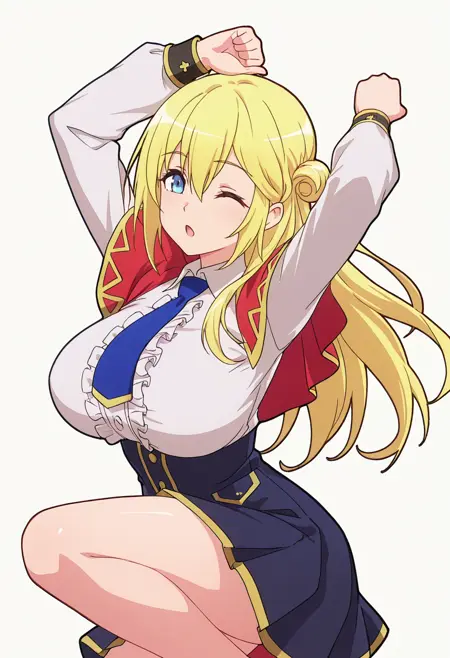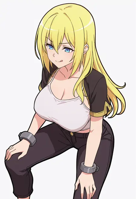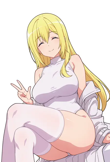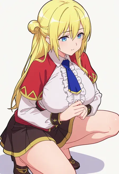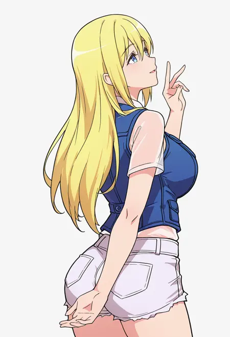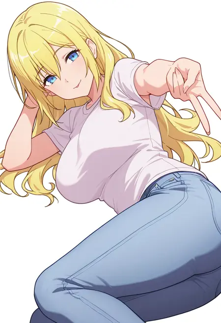 enome_cnr, 金色头发, 蓝色眼睛, 长发, 大胸部, 头发位于眼睛之间, 单束发髻,