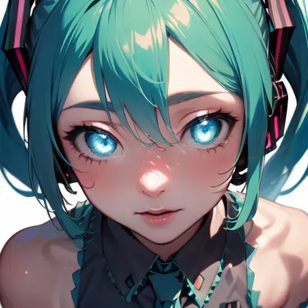 このLoRAは、他のMiku LoRAと同様ですが、適用する強度に応じて目が光る特性があります。