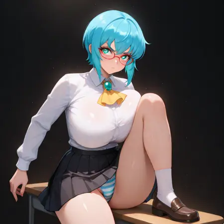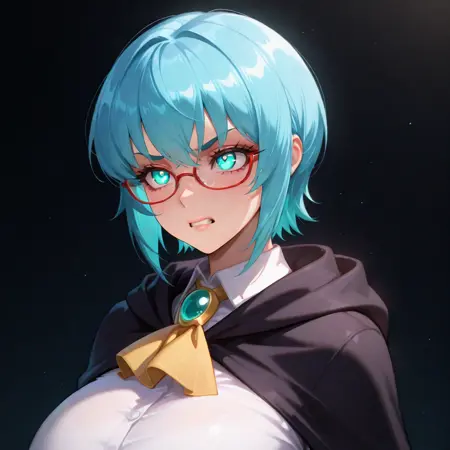 aqua_eyes,blue_hair,short_hair,bangs,sidelocks,eyewear,glasses,red-framed_eyewear,