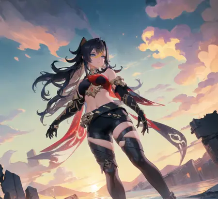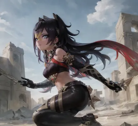 선택적 프롬프트: 어둠색 피부, 복부, 음문부, 배꼽, 장갑