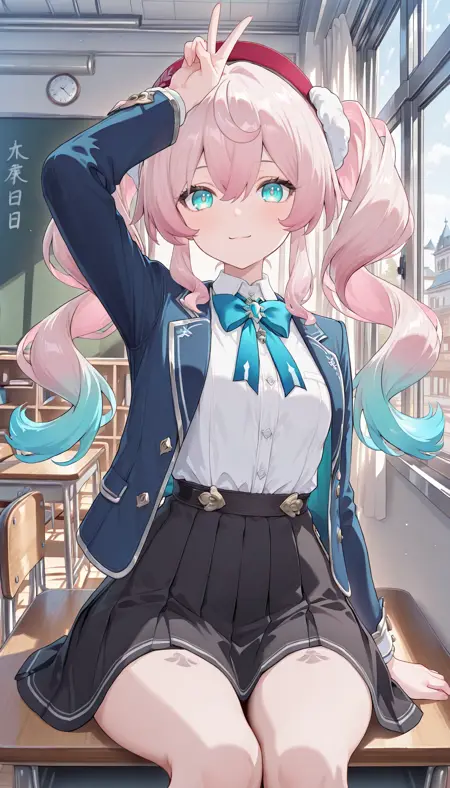 머리:tj_hyacine, 빨간 모자, 머리장식, 핑크색 머리, 더블테일, 다색 머리, 그라데이션 머리, 긴 머리, 파란색 머리, 측면 머리카락, 눈 사이의 머리카락, 아쿠아색 눈,