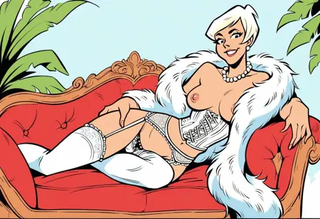 태그: "Herm1one_L0dge, 단발, 흰 머리, 금발". 기본 옷차림은 없지만, 자주 "귀걸이, 진주 목걸이"를 착용함. "레트로 아트 스타일"과 "만화책 아트"로 만화의 외관을 재현하세요.
