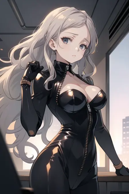 바디슈트(머리 풀어놓음): mmbs, black bodysuit, gloves