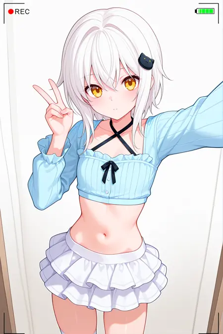 • 기본 프롬프트: k0n3k0, 1girl, solo, white hair, yellow eyes, cat hair ornament, hair ornament, hair between eyes, bangs,