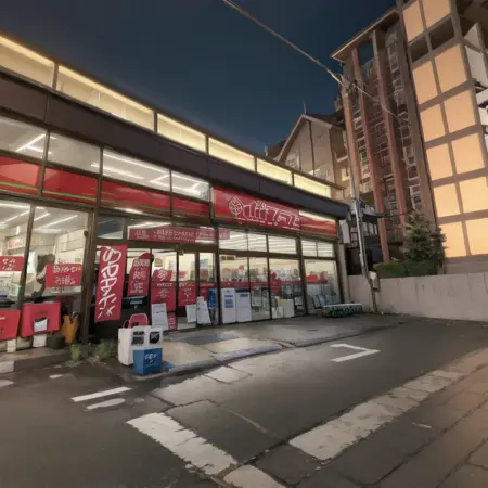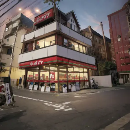 広島県を中心に西日本から関東まで店舗を展開している某コンビニエンスストアの外観っぽい風景をもしかしたら描けるかもしれないLoRAです。