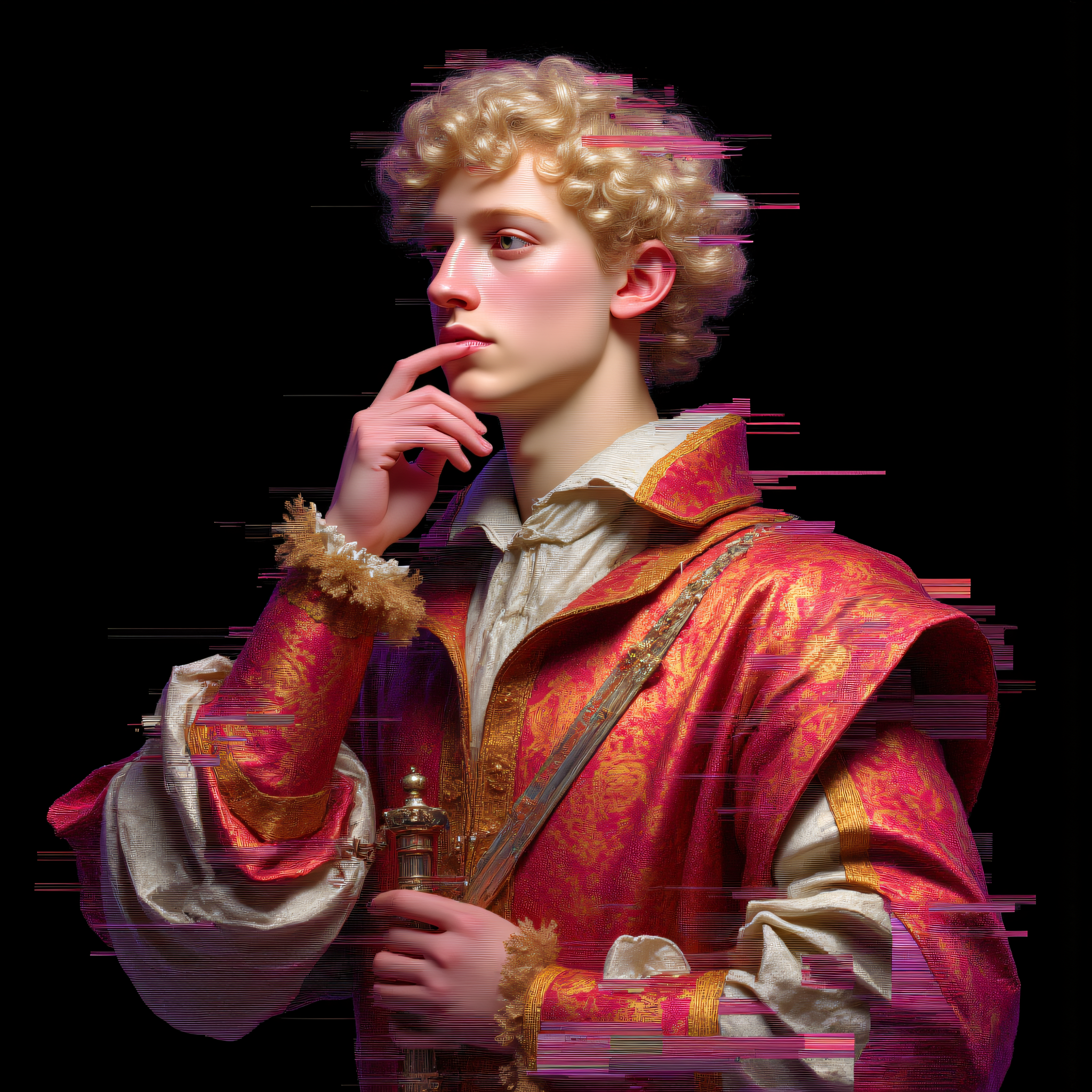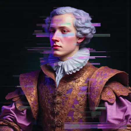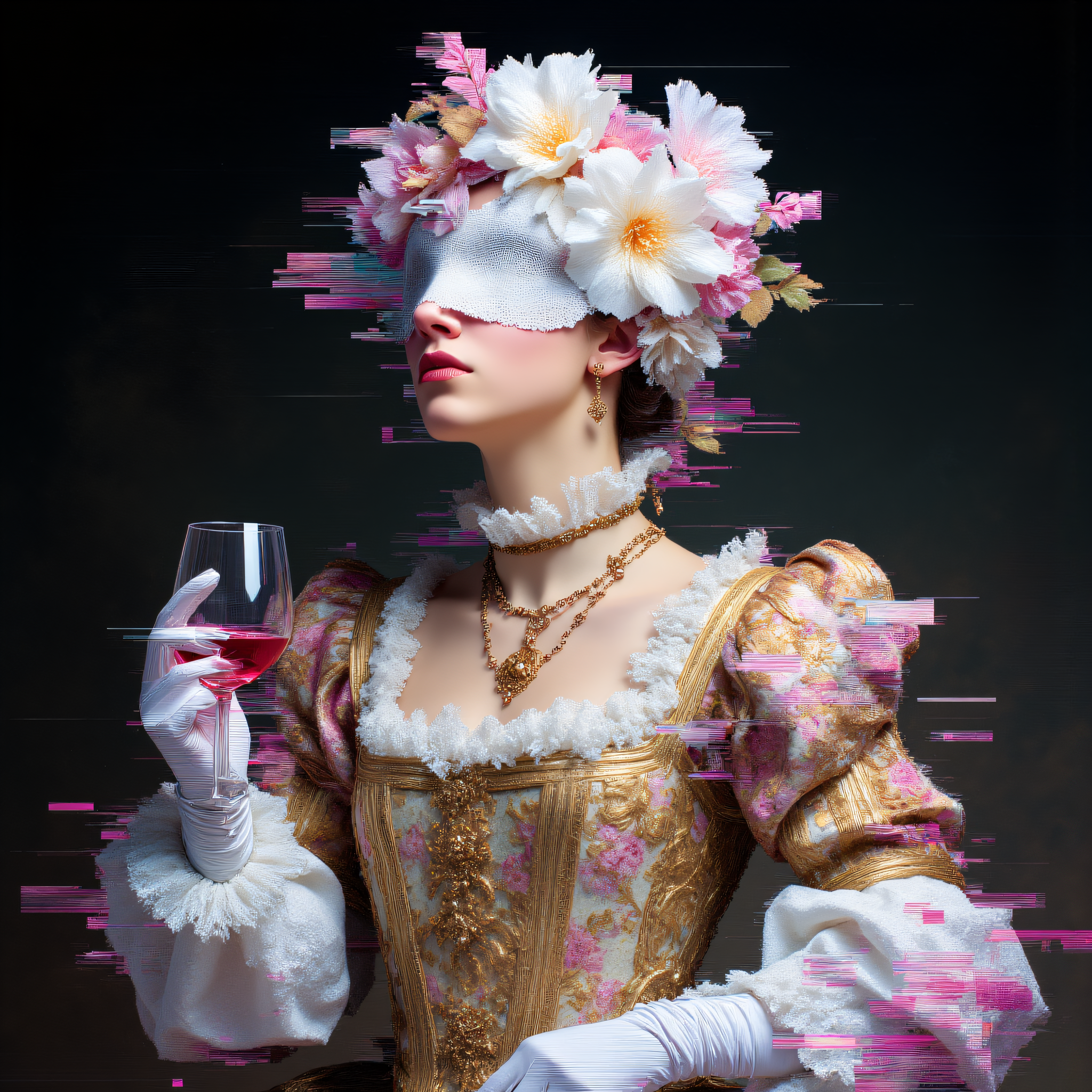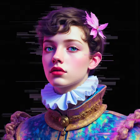 이 스타일은 바로크 미술의 화려함과 글리치코어의 파편화된 미학을 결합합니다. 풍부한 질감, 극적인 명암 대비 조명, 그리고 디지털 왜곡이 특징이며, 주로 초상화를 중심으로 구성됩니다.