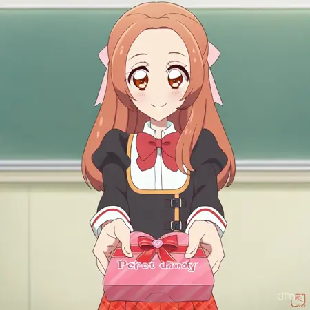 school uniform, black jacket, white collared shirt, red bowtie, red plaid skirt, brown knee high boots,