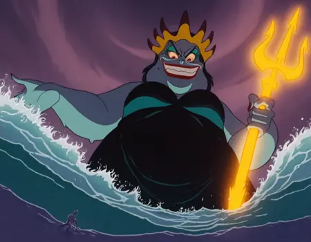 Ursula with a crown and a trident