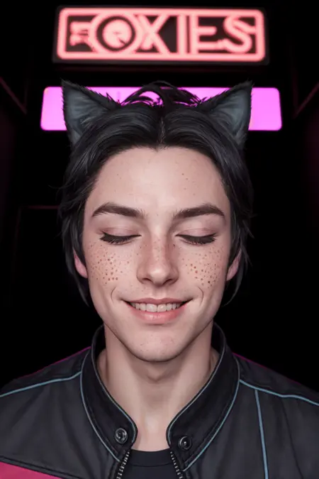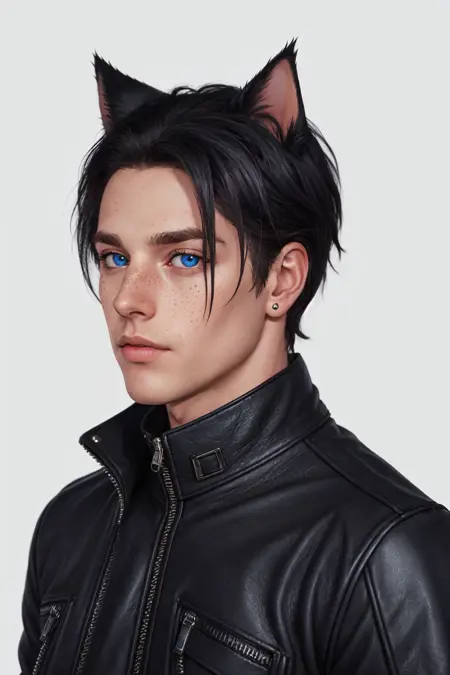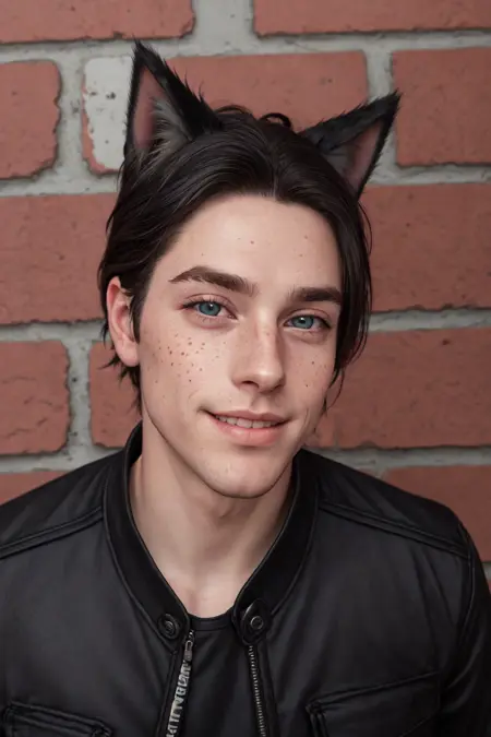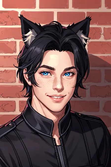 그는 검은 머리의 고양이 소년이며, 매우 귀엽다.