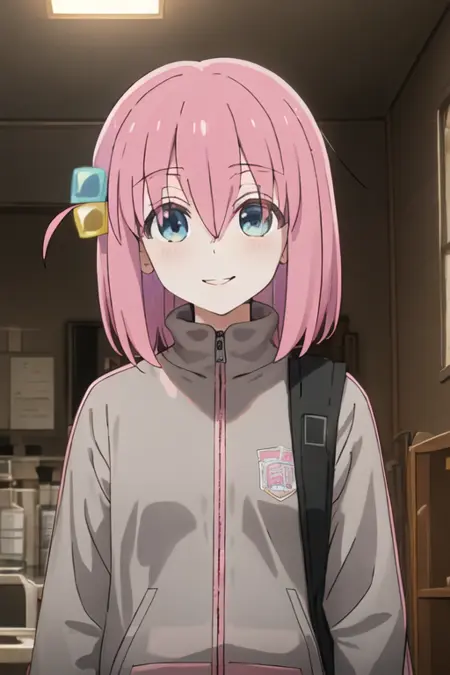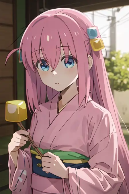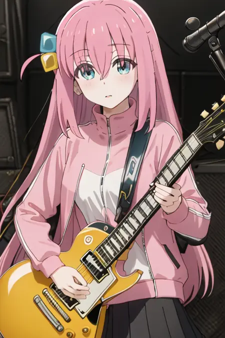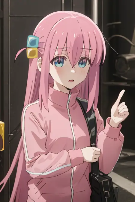 触发词为 goto_hitori_bocchitherock,推荐标签为:best quality, masterpiece, highres, solo, {goto_hitori_bocchitherock:1.15}, pink_hair, bangs, long_hair, hair_between_eyes, cube_hair_ornament, one_side_up, hair_ornament, blue_eyes