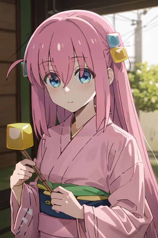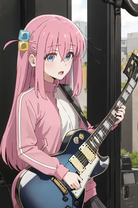 트리거 단어는 goto_hitori_bocchitherock이며, 권장 태그는 best quality, masterpiece, highres, solo, {goto_hitori_bocchitherock:1.15}, pink_hair, bangs, long_hair, hair_between_eyes, cube_hair_ornament, one_side_up, hair_ornament, blue_eyes입니다.