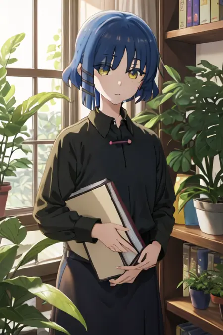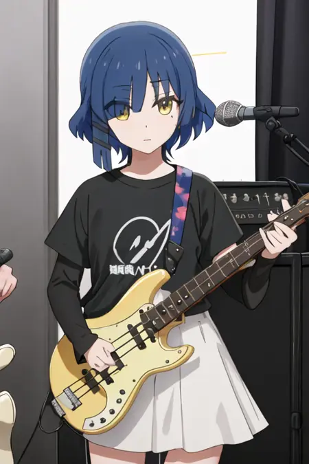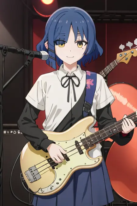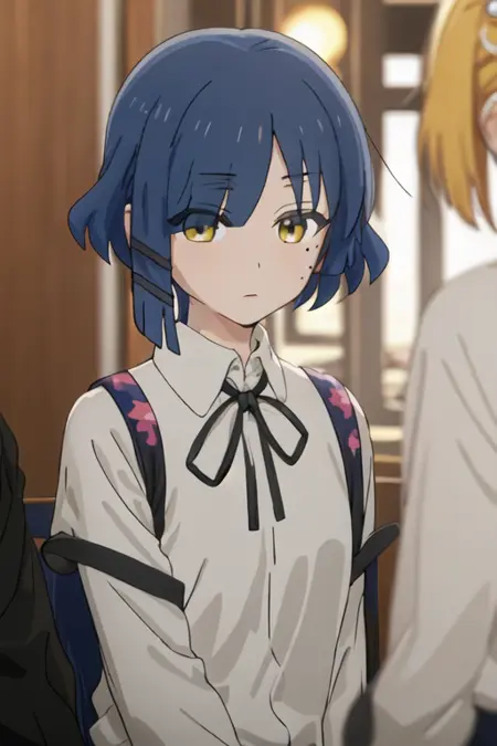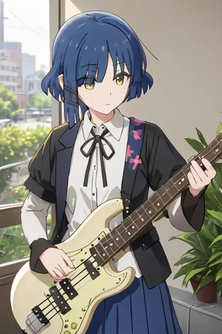 触发词为 yamada_ryo_bocchitherock,推荐标签为:best quality, masterpiece, highres, solo, {yamada_ryo_bocchitherock:1.15}, blue_hair, short_hair, bangs, mole_under_eye, mole, yellow_eyes, hair_ornament, closed_mouth, hairclip。