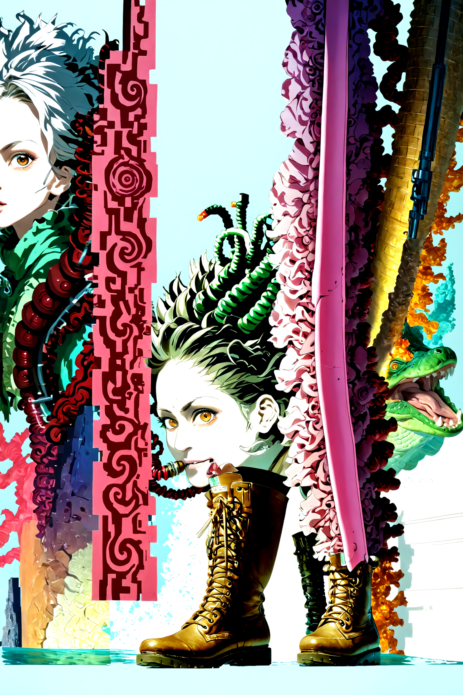 Style(s) then medium(s) in and unbroken prompt together has worked best for me, though they're technically entirely optional. If you are using them, adding another set styles/media afterwards if you want and then adding other descriptors can bring more cool, chaotic results. Styles and mediums are a bit more hit-and-miss in Illustrious I've come to discover but they're not absent entirely (making versions for other models is probably on my short list). This LoRA is suited to, if nothing else, experimentation. All that said, here's a few medium/style prompts that came back with interesting results for me: