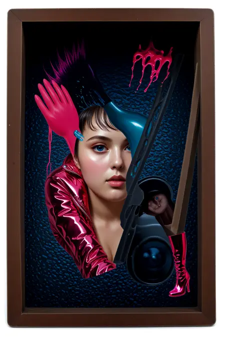 * punk rock torn paper collage \(medium\) with misprinted cmyk screentones + scotch tape, distressed textures, blacklight poster, inverted colors,