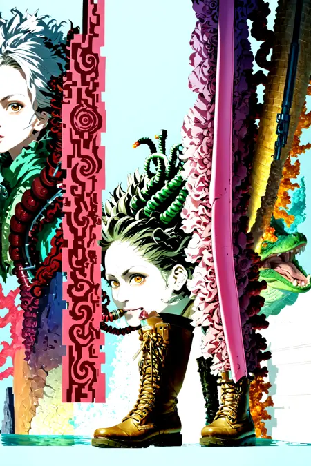 Style(s) then medium(s) in and unbroken prompt together has worked best for me, though they're technically entirely optional. If you are using them, adding another set styles/media afterwards if you want and then adding other descriptors can bring more cool, chaotic results. Styles and mediums are a bit more hit-and-miss in Illustrious I've come to discover but they're not absent entirely (making versions for other models is probably on my short list). This LoRA is suited to, if nothing else, experimentation. All that said, here's a few medium/style prompts that came back with interesting results for me: