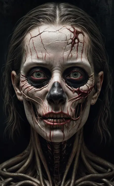 このモデルは、ダークな美意識、ホラー、神秘主義、そして超現実的な悪夢の世界に深く dive します。グリムな現実主義への挑戦が、気味が悪いほど洗練された美と、美しい恐怖の狭間にある独自のスタイルを生み出しました。