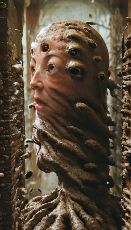 This model dives deep into the realm of dark aesthetics, horror, mysticism, and surreal nightmares. An attempt to touch grim realism has led to a unique stylistic outcome — somewhere between disturbing elegance and beautiful dread.