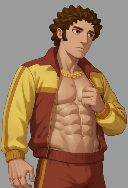 빈니 다코타, 갈색 머리, 남성, 곱슬머리, 금색 목걸이 체인,