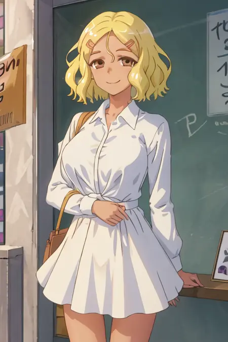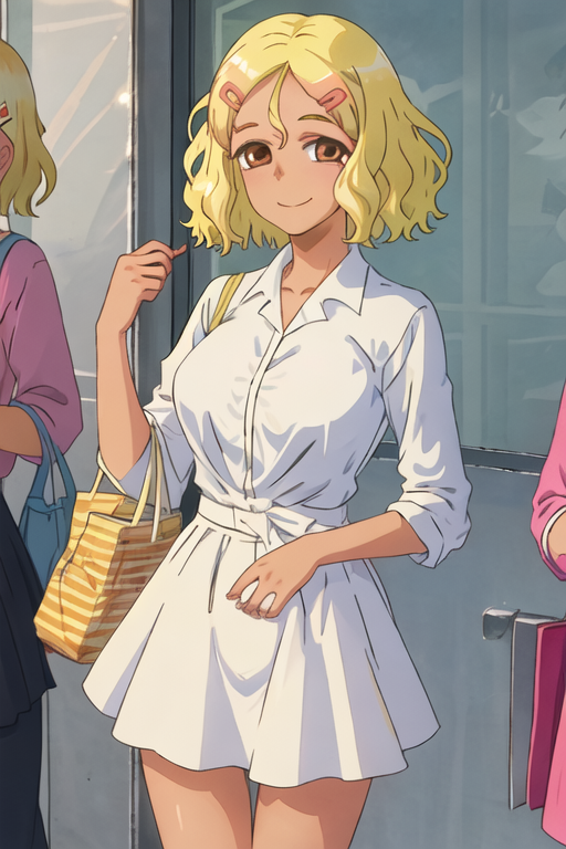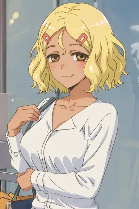 - The pruned character tags are blonde hair, hair ornament, hairclip, short hair, brown eyes, dark skin, dark-skinned female. You can add them into prompts when core features (e.g. hair color) of character is not so stable.