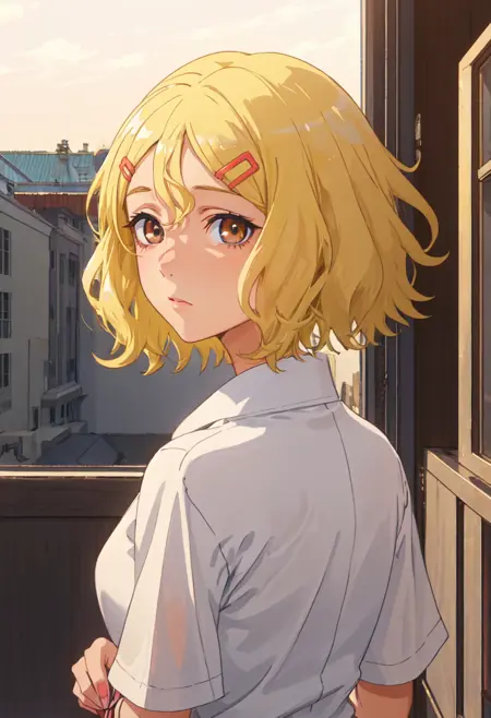 - 经过精简的角色标签包括:金发、发饰、发夹、短发、棕眼、深色皮肤、深肤色女性。当角色的核心特征(如发色)不够稳定时,您可以将这些标签添加到提示词中。