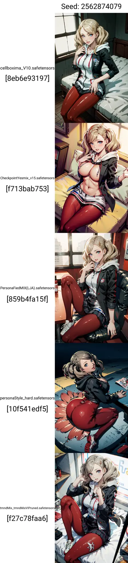 The starting point for this model was my Persona Mix Hard. From there, I then added a few of the models which gave me a level of quality and a close style to the Persona one I was looking for. I tried many of the persona characters with different weights like .75, .8, 1.0 all with great results.