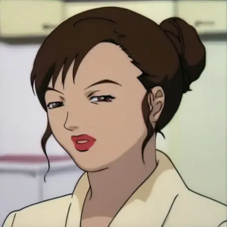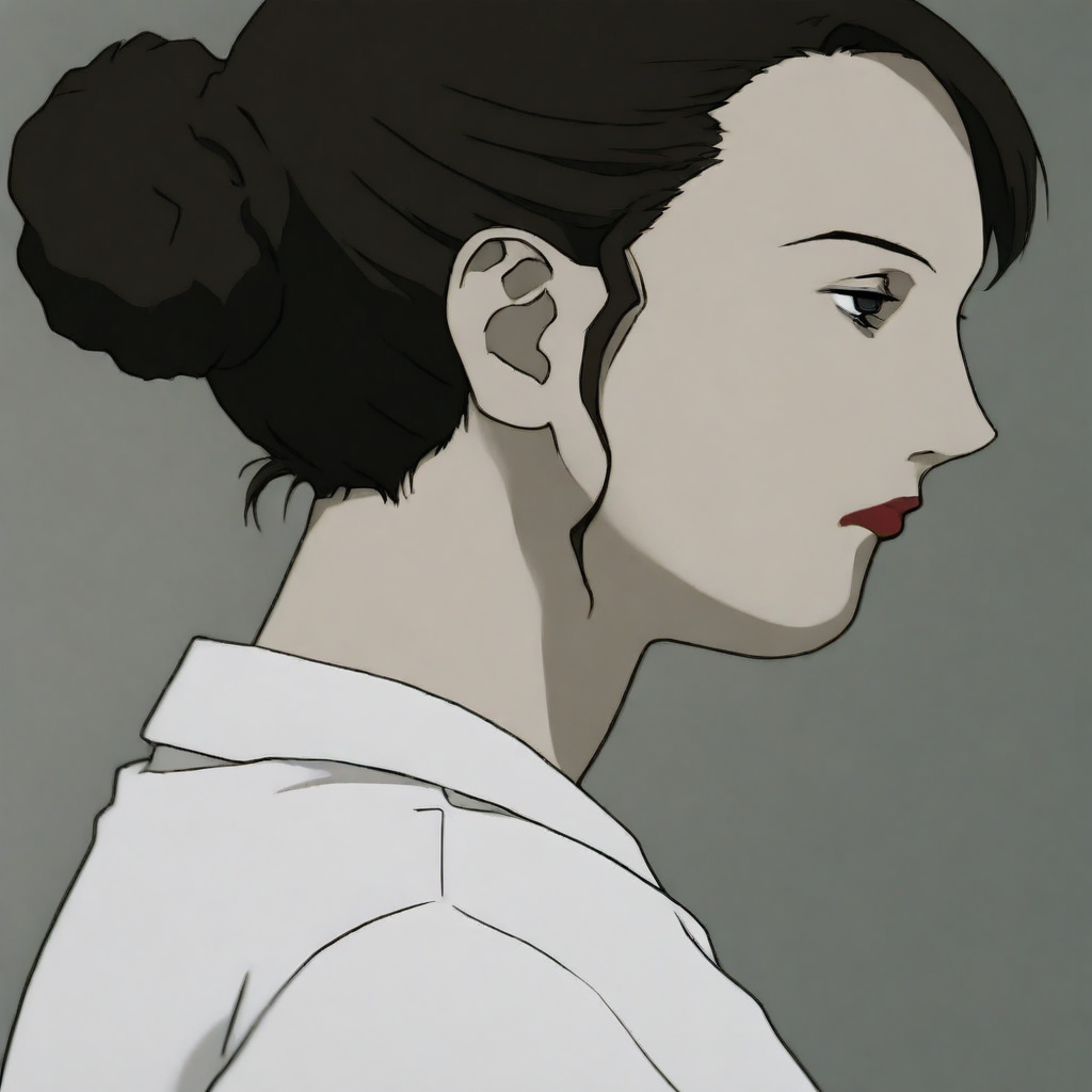 Miho,1girl,brown hair tied in a bun,red lips