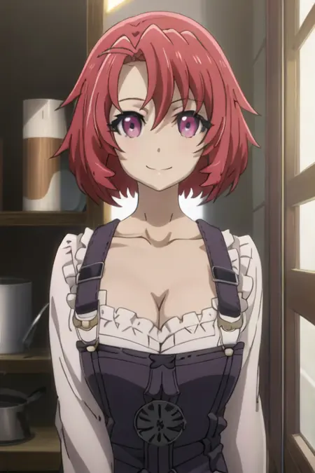 触发词为 cow_girl_goblinslayer,推荐标签为:best quality, masterpiece, highres, solo, {cow_girl_goblinslayer:1.15}, short_hair, red_hair, pink_eyes, purple_eyes, collarbone, breasts。