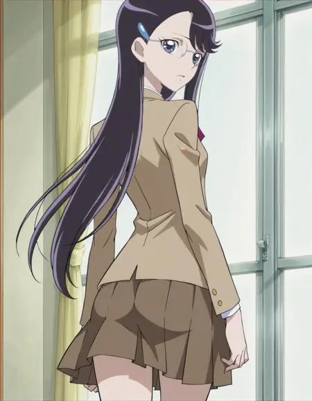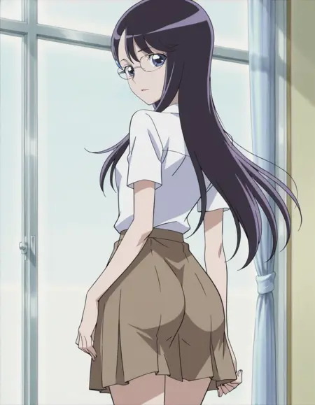 动漫截图,单人,1女孩,tsukikageyuri,校服,眼镜,裙子,衬衫,短袖,lora:tsukikageyuri_IL:0.8高清,绝佳画质,最佳画质,非常美观,杰作,absurdres,