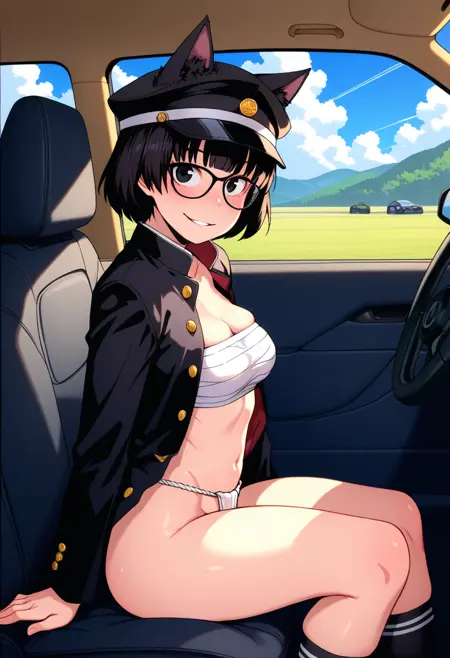 猫耳,鸭舌帽,学兰服,敞开的夹克,半开式夹克