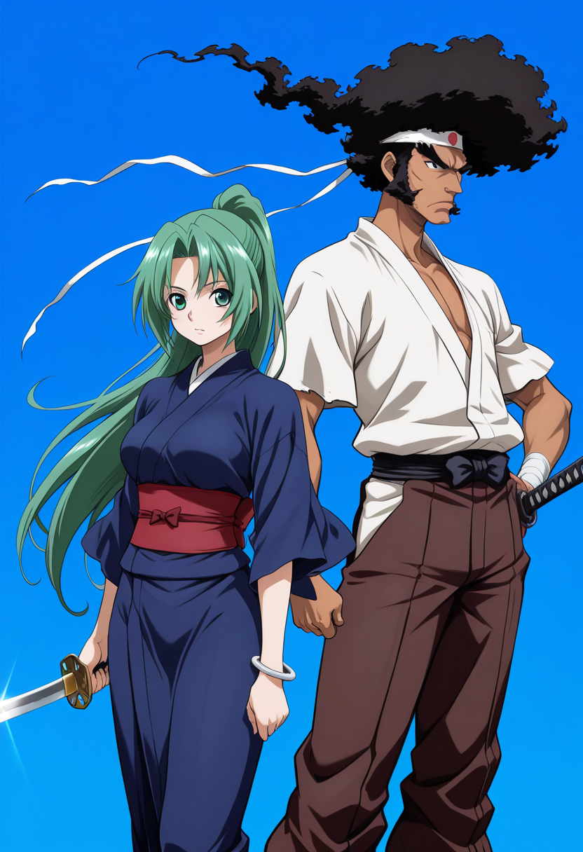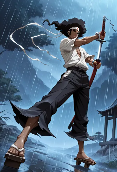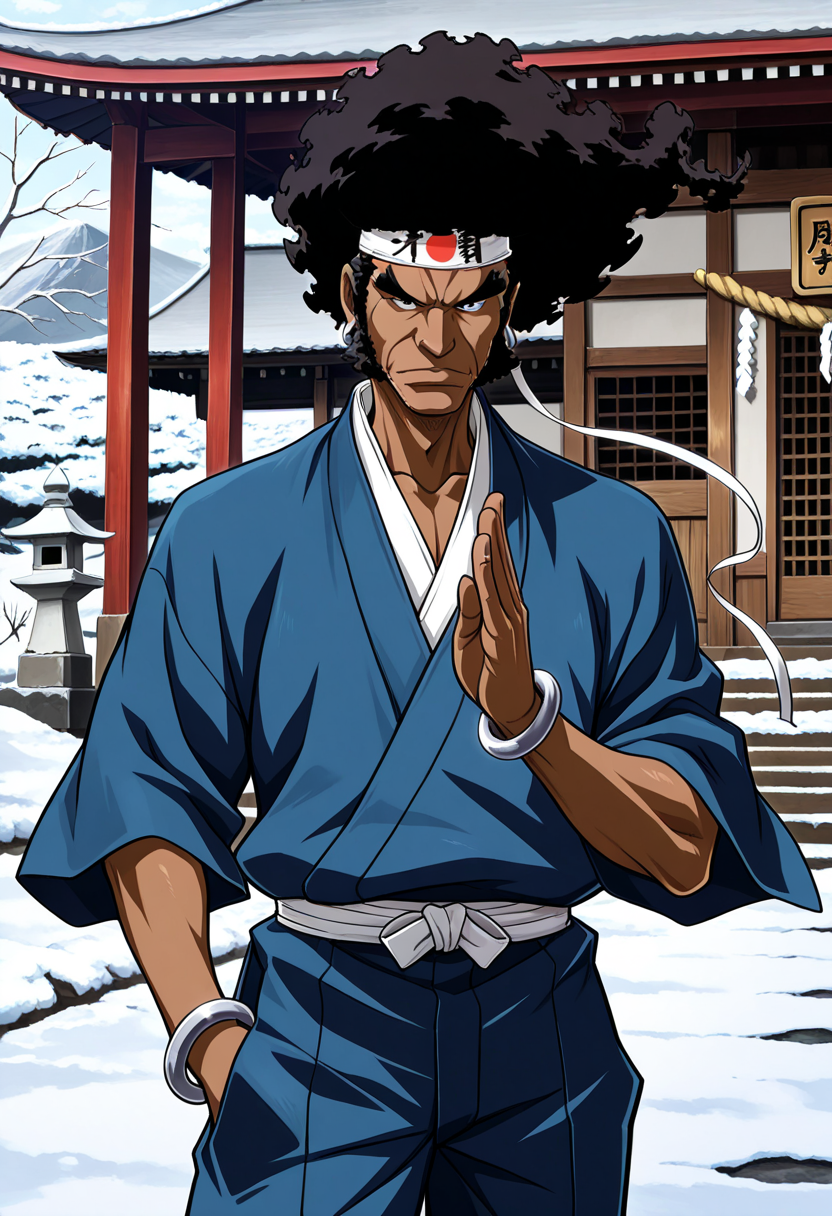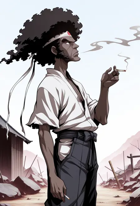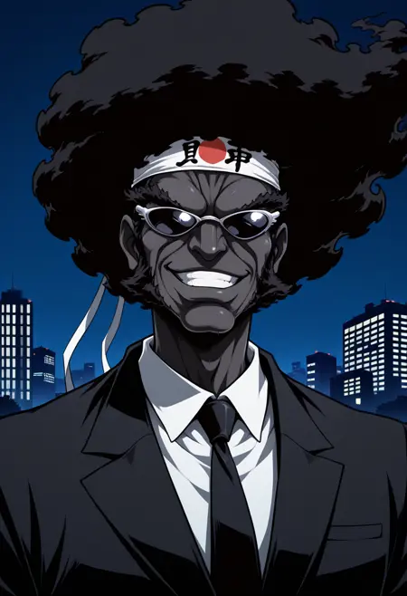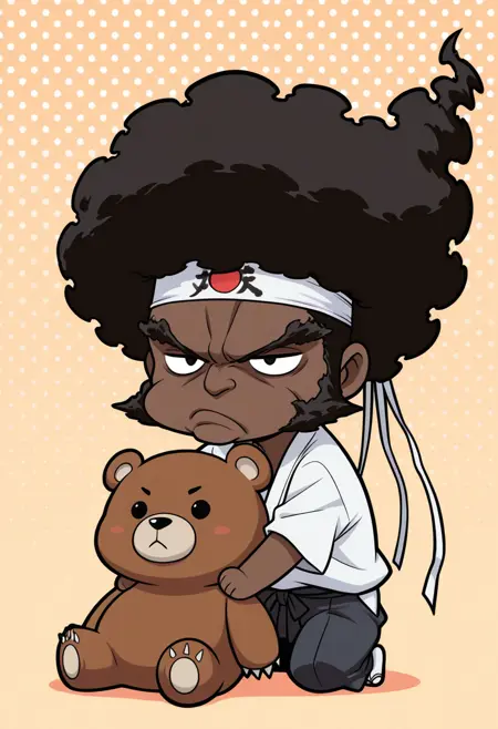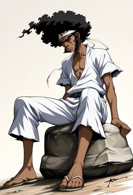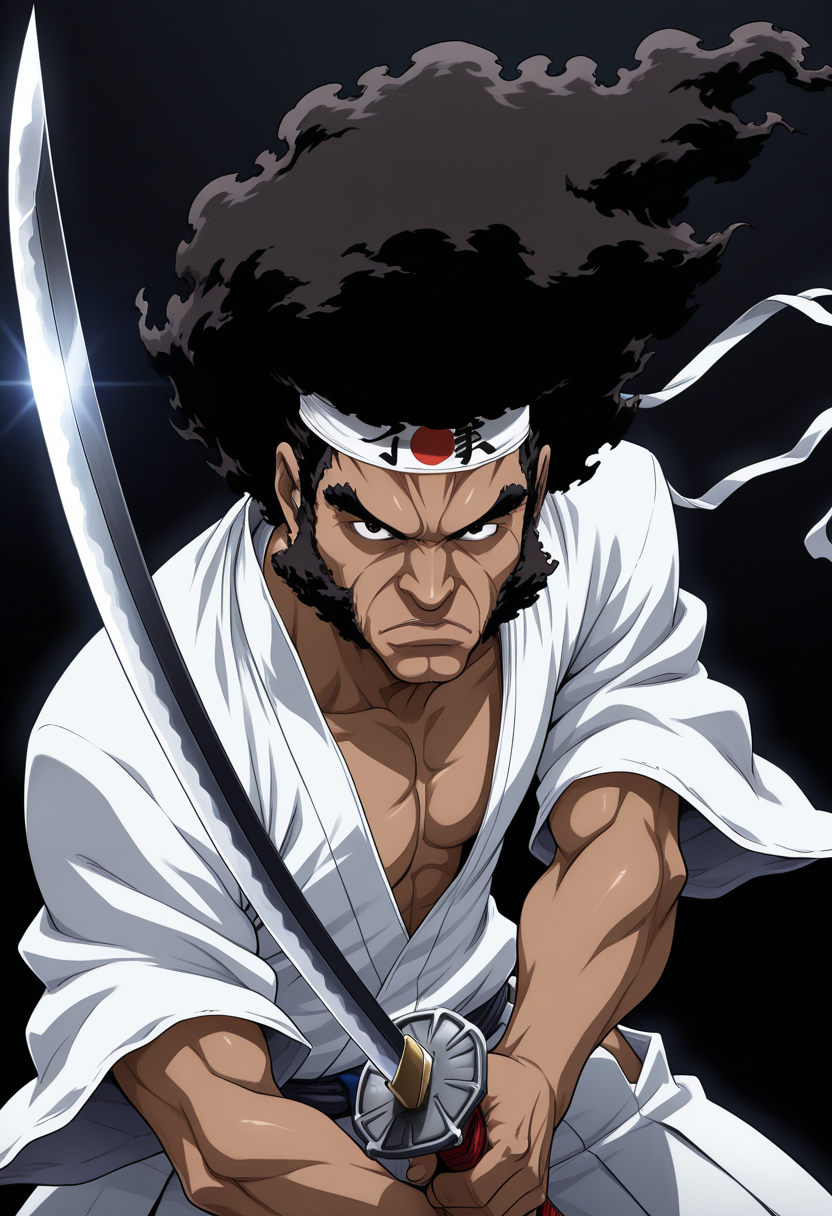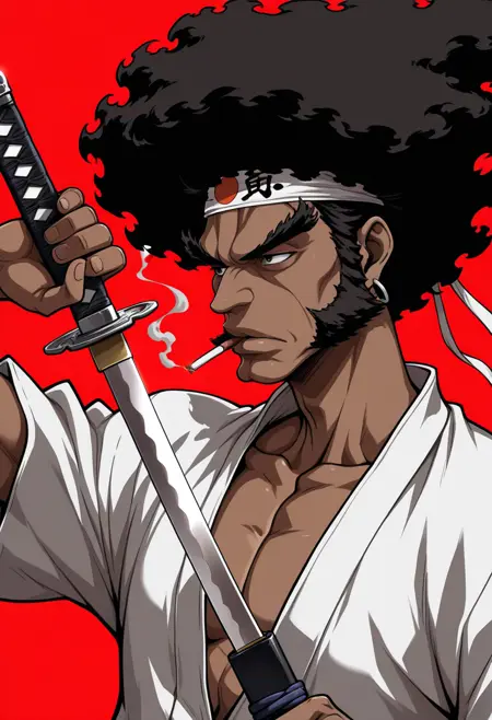 The main character of the manga 'Afro Samurai' created by Takashi Okazaki. The manga was adapted into a film in 2004 by the Japanese studio Gonzo.