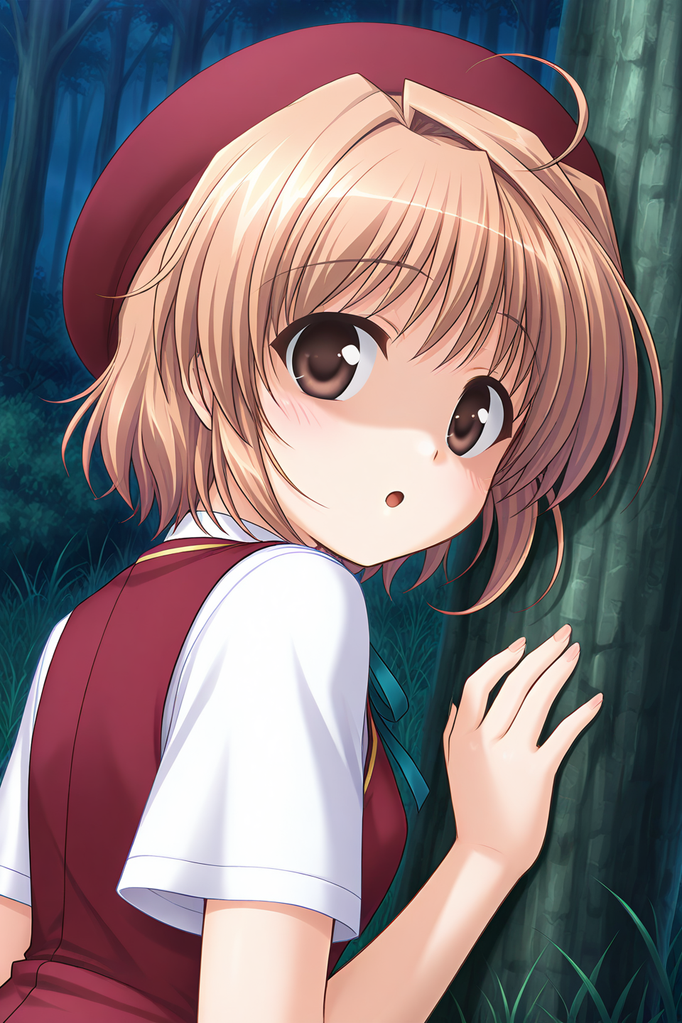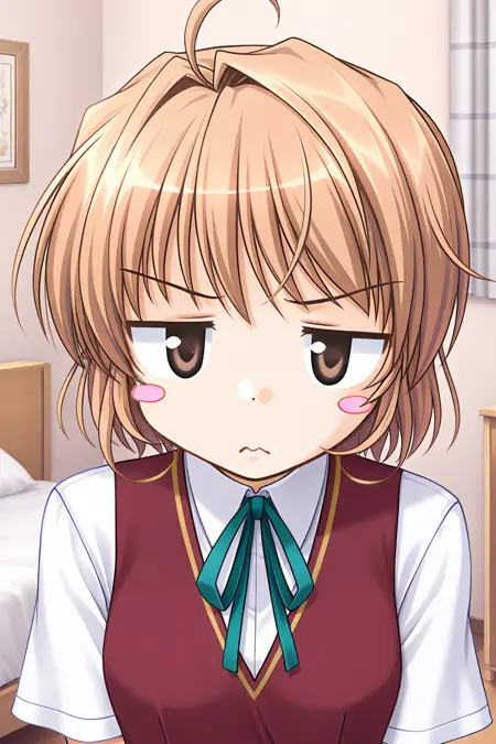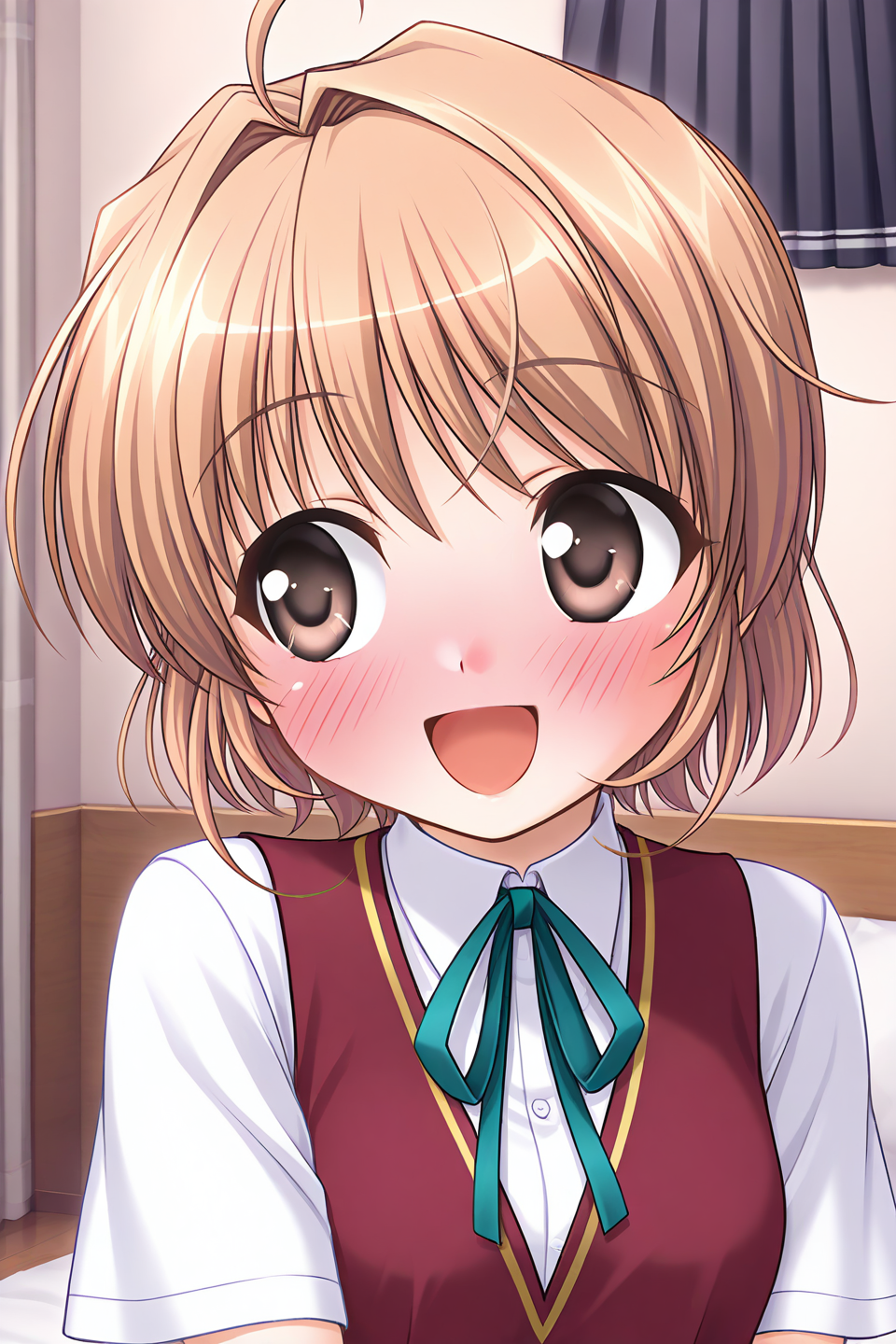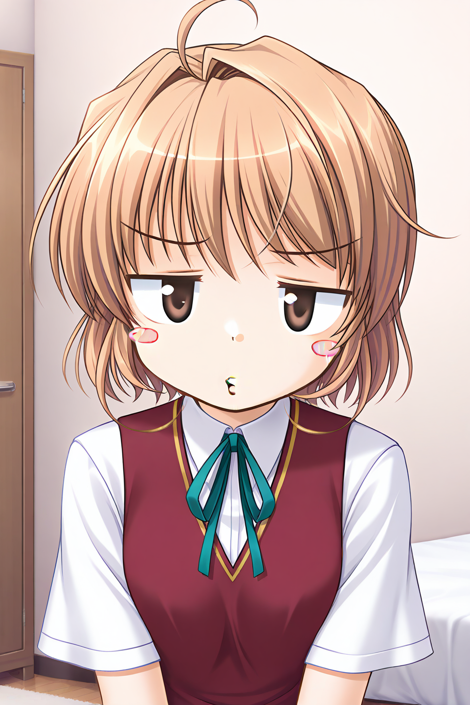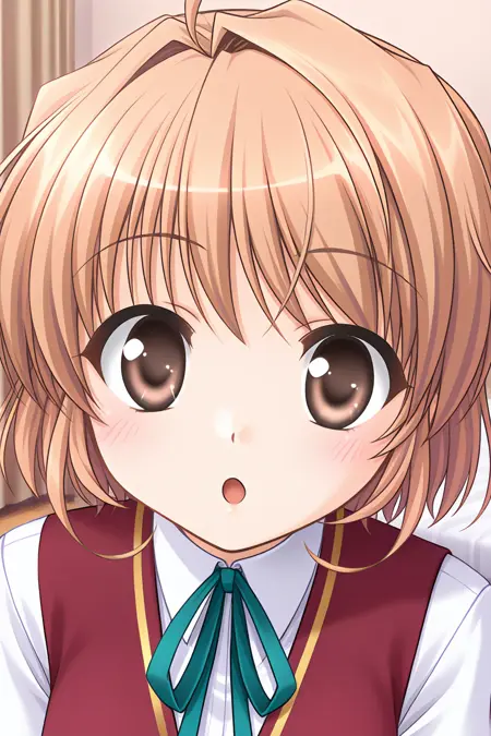 yuuki kanade, 갈색 눈, 아호게, 연한 갈색 머리, 단발, 머리카락이 들어가는,
