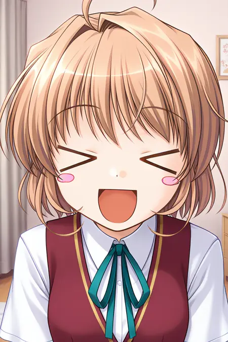 붉은 뺨, doyagao, 시청자 바라봄, 입 벌림, 풍자, 웃음, 만족스러운 표정, 직사각형 입, 입술 벌림,