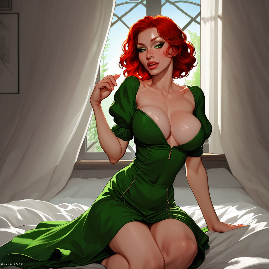 シエナ・ルローは、画像やスタイルを超えて一貫したキャラクターを実現するために私が作成したカスタムキャラクターモデルです。シエナは短い赤毛、緑の目、そばかす、緑の服をしています。