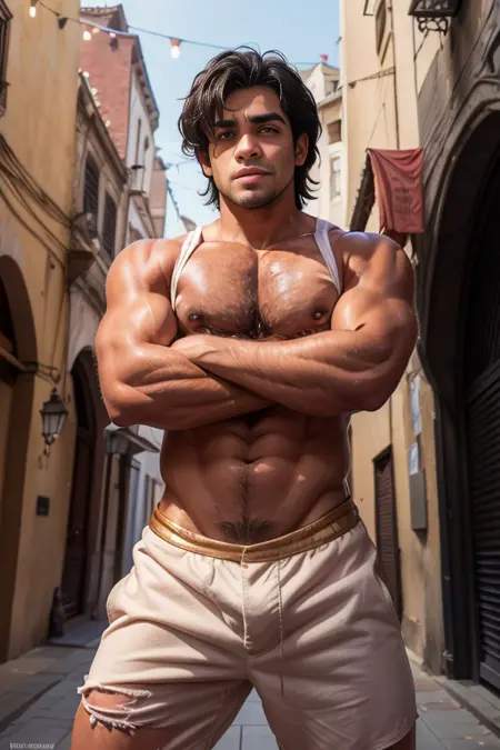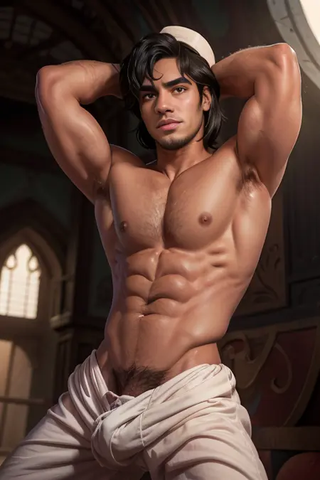 A young thief from Agrabah that spends his days eating dates, wooing girls and playing with his little monkey Abu. When he's alone sometimes he indulges in more... steamy activities.