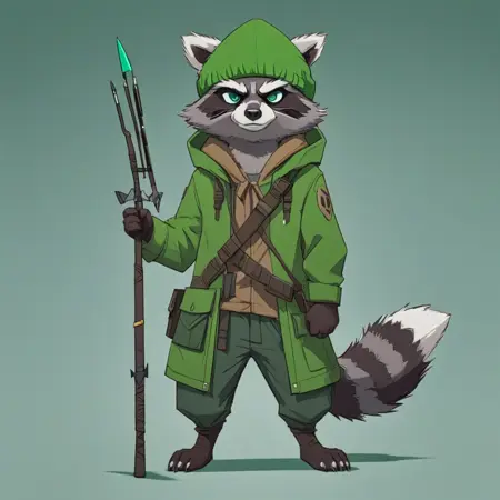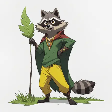 This model is capable of making characters of any genre, but it is most adept at generating characters that involve anthropomorphic raccoon motifs.