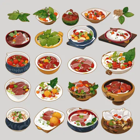 尺寸设定为680x680可随机排列的食物混搭菜肴
