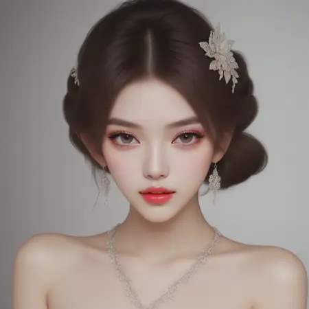 超现实风格的亚洲美女,精致妆容,迷人大眼睛。