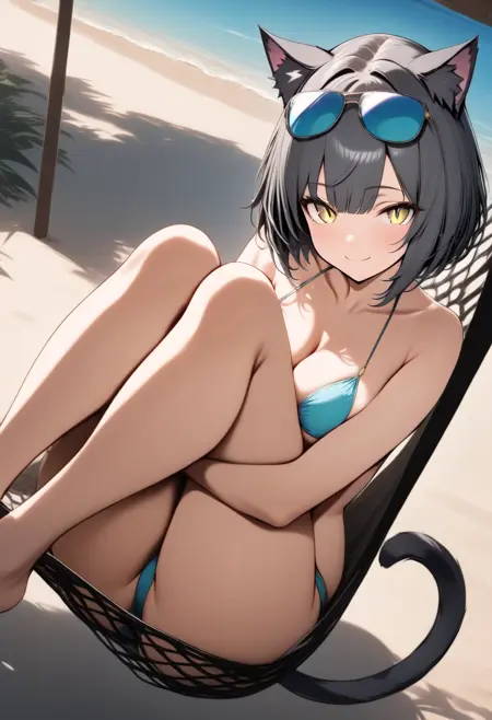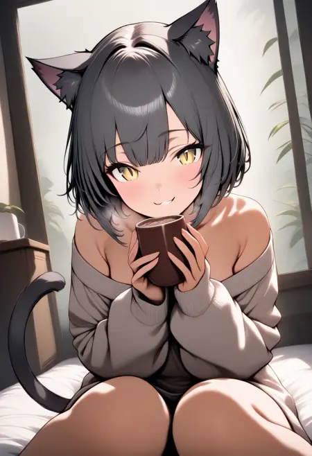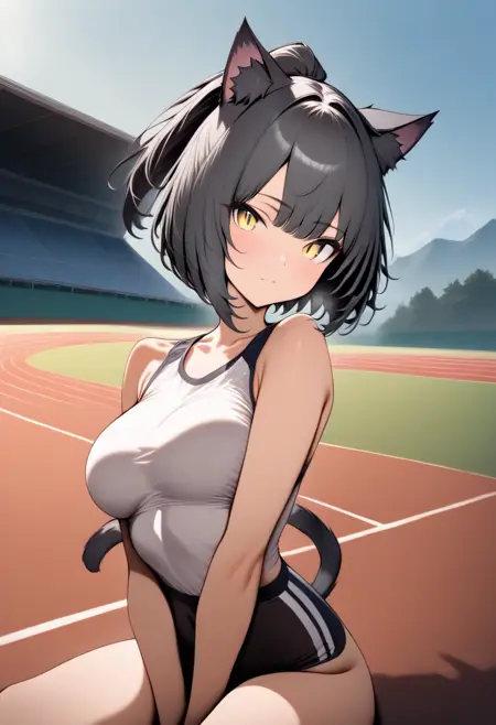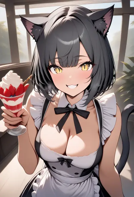 ダークグレーの猫耳と尻尾、ミディアムボブに琥珀の瞳がトレードマークの小悪魔アタッカー。