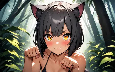 ダークグレーの猫耳と尻尾、ミディアムボブに琥珀の瞳がトレードマークの小悪魔アタッカー。