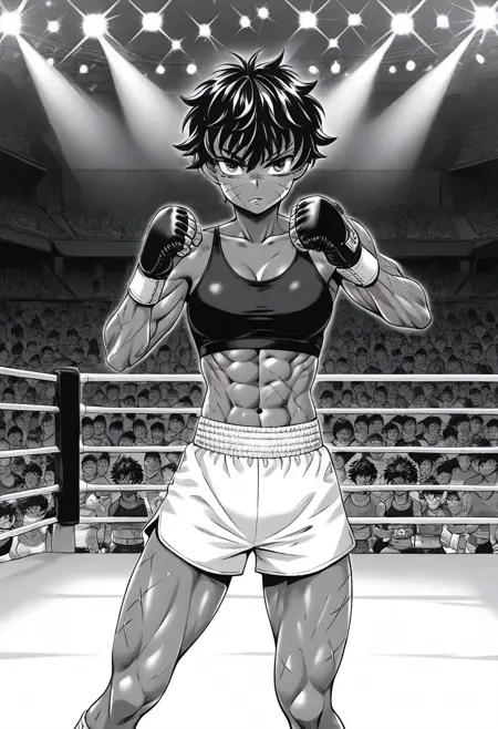 | Trained Words | MaoMao, 1girl, tomboy, dark-skinned_female, brown_skin, short_hair, black_hair, messy_hair, thick_eyebrows, muscular, abs, biceps, triceps, athletic body, toned, toned_body, biceps, medium_breasts, midriff, navel, toned body, scars, scars on face, body scars, mma sports bra, mma shorts, mma gloves, fingerless gloves Copied! MaoMao, 1girl, tomboy, dark-skinned_female, brown_skin, short_hair, black_hair, messy_hair, thick_eyebrows, muscular, abs, biceps, triceps, athletic body, toned, toned_body, biceps, medium_breasts, midriff, toned body, scars, scars on face, body scars, navel, black bikini Copied! MaoMao, 1girl, tomboy, dark-skinned_female, brown_skin, short_hair, black_hair, messy_hair, thick_eyebrows, muscular, abs, biceps, triceps, athletic body, toned, toned_body, biceps, medium_breasts, midriff, navel, toned body, scars, scars on face, body scars, nude Copied! |