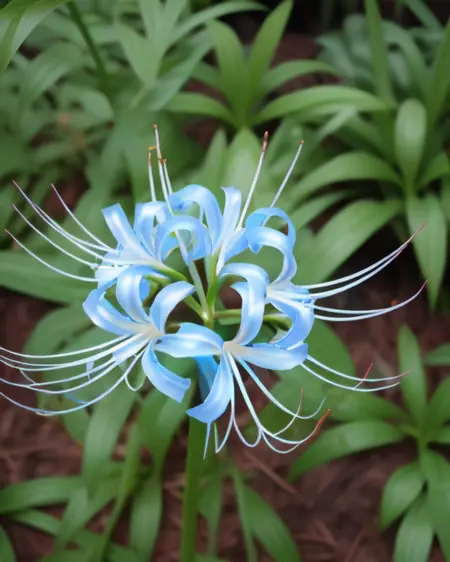 white and blue Spider lily