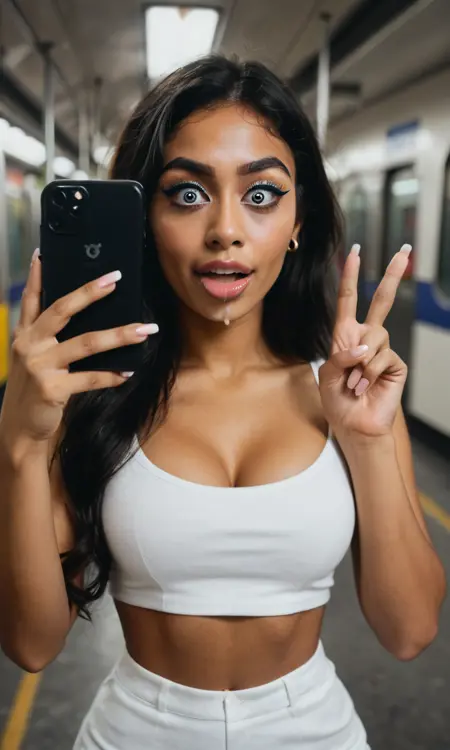 프롬프트: 휴대폰을 보고 있음, 자연스러움, 나선형 눈, 빛나는 눈, 눈을 굴림, 교차한 눈,