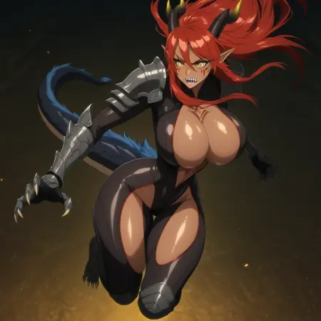 | 训练词汇 | anime screencap, masterpiece, expressiveh, anime coloring, score_9, score_8_up, score_7_up, score_6_up, 已复制! nude, nipples, plump pussy, Puffypu55y, puffy pussy, engorged vagina, (fat mons:1.5), engorged clitoris 已复制! 1girl, solo, yellow eyes, huge breasts, bursting breasts, thick thighs, shiny skin, narrow waist, wide hips, perfect body, fit body, dark skinned female, pointy ears, elf, dragon horns, facial mark, symmetrical face markings, sharp teeth, body markings, claws, dragon girl, 已复制! revealing clothing, armored gloves, armored bodysuit, dark bodysuit, full body body suit, center opening, black fur around her neck, thigh cutout, cleavage, pauldrons, shoulder armor, 已复制! skindentation, 已复制! <lora:Expressive_H:1> 已复制! |