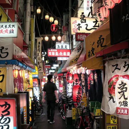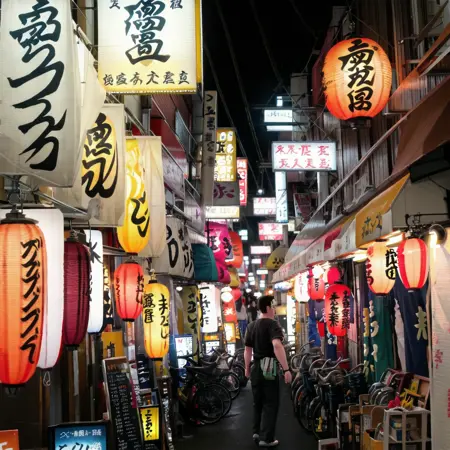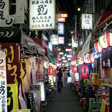 狭窄街道两旁林立的大众酒馆与餐饮店,屋檐下的霓虹灯、招牌、纸灯笼,店前杂乱堆放的啤酒箱和自行车,这些如今已很少见到,或许正逐渐消失的日本风景。献给喜欢这种景象的你。