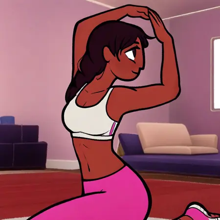 분홍색 요가 팬츠, 흰색 스포츠 브라